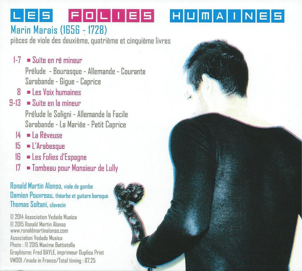 The score makes full use of the instrument’s broad palette of colors, its tonal range and possible different playing styles, the various tricks needed in bowing along with a constant interplay between melody and harmony that results in a music of extraordinary richness. Marais brought the viola da gamba to the very summit of music making and kept it there for almost a century and it is to Marais the composer to whom this recording is dedicated. The form follows the path of the human voice as it goes through the various passions and the follies of the soul, from birth to death.
